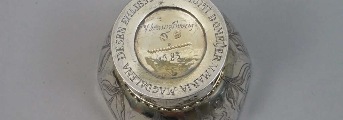 Die Inschriften lauten „CHRISTOPH DOMEŸER. V. MARIA MAGDALENA DESEN EHLIBSTE (seine Geliebte) / V Braunschweig 1683′.
