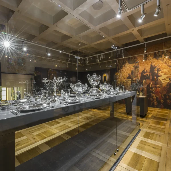 Bezug zu seiner Gruppe in der es gezeigt wird. Mittig im Raum die prachtvolle Tafel die die höfischen Tischkultur der Familien seiner Zeit repräsentiert.